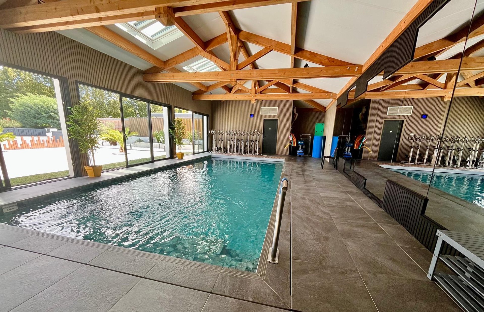 Je vous accueille dans une piscine d'une dimension de 10 m par 4 et dans une eau à 30°C.
